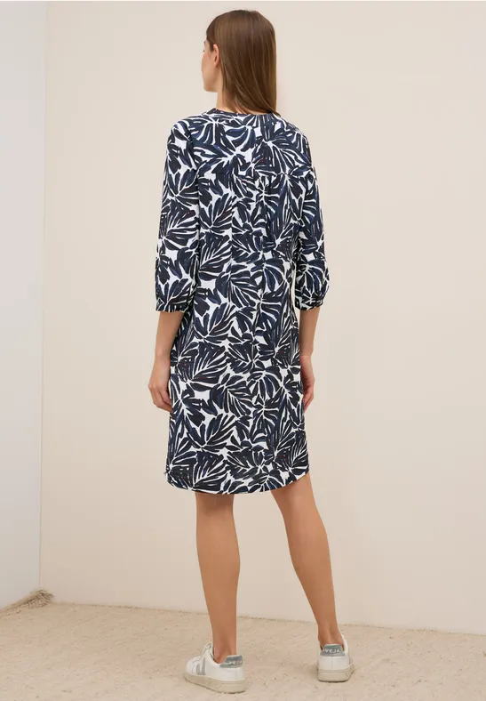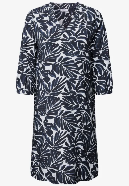 Met zijn grafische all-overpatroon en vrouwelijke V-halslijn is deze zomerjurk voor dames van CECIL een echte blikvanger. De fijne structuurstof voelt aangenaam aan op de huid, terwijl de 3/4-mouwen lichtgewicht comfort bieden. Perfect voor ontspannen zomermomenten met stijl.