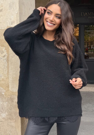 Soft trui Kanten Mouw Liva Zwart
