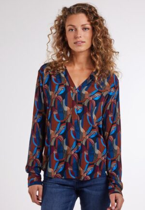 Blouse Lola Brown Crimson print