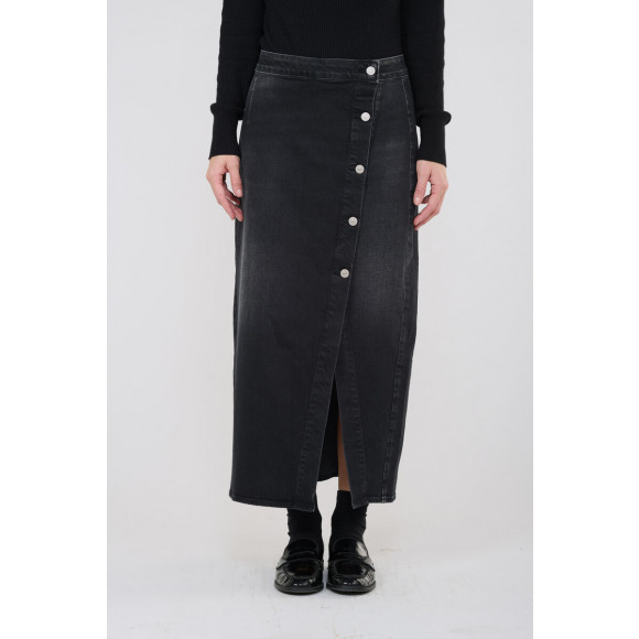 Rok van het merk Le Temps des Cerises. Deze zwarte denim rok in midi-lengte heeft een asymmetrische knoopsluiting en een split aan de voorkant. De gewassen look geeft een stoere touch, terwijl de slanke pasvorm zorgt voor een vrouwelijk silhouet.