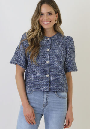 Tweed Puff Sleeve Jacket Blue