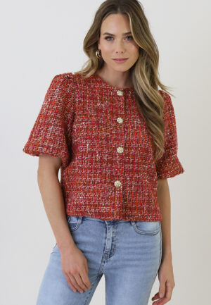 Tweed Puff Sleeve Jacket Orange