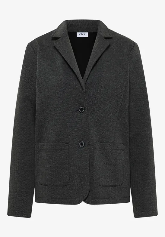 De Herringbone blazer van CECIL voor dames brengt klassiek chic in je dagelijkse leven. Het opvallende visgraatmotief en de opgestikte zakken geven de blazer een stijlvolle look, terwijl de reverskraag en lange mouwen zorgen voor tijdloze elegantie. Perfect te combineren – casual met jeans of chic op kantoor.