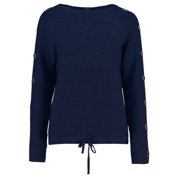 Trui van Bloomings. Deze fijne knit met ronde hals en knoopdetails langs de mouwen geeft een moderne twist aan je outfit. Het strikkoord aan de zoom zorgt voor een speels effect en maakt het mogelijk de pasvorm subtiel te variëren. Gemaakt van een zachte kwaliteit die comfortabel draagt.