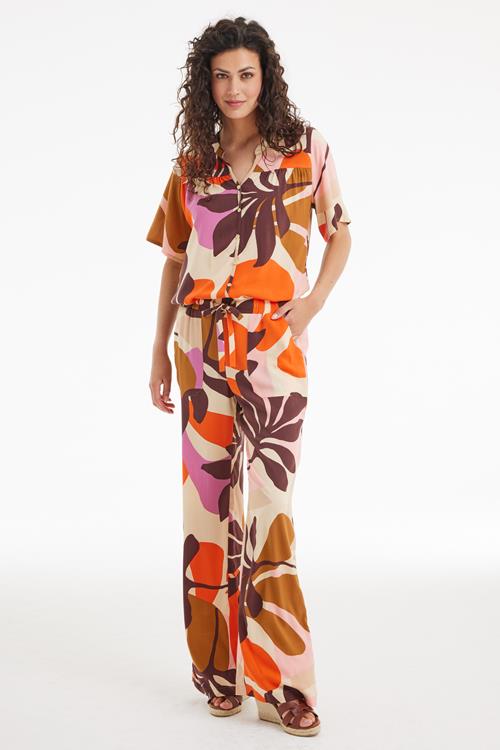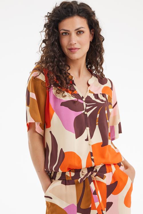 Blouse Bee Symphony print: Elegantie en Vrijheid Ervaar een vleugje tijdloze frisheid met de Blouse Bee Symphony print. Deze blouse combineert de luchtigheid en veelzijdigheid die je zoekt in je dagelijkse garderobe. De korte mouwen en rechte pasvorm geven je een comfortabele en vrijgevochten uitstraling. Met een elegante V-hals en elastiek in de zoom is deze blouse ideaal voor zonnige, energieke dagen. Kies voor wit, een kleur die je gemakkelijk kunt combineren en die bij elk moment past. Gemaakt van hoogwaardige stof De Blouse Bee Symphony print is vervaardigd uit 100% viscose. Deze hoogwaardige stof staat bekend om zijn zachte en soepele eigenschappen, waardoor het heerlijk aanvoelt op je huid. Viscose is ademend en reguleert vocht optimaal, ideaal voor die frisse, warme dagen. Het biedt niet alleen draagcomfort, maar behoudt ook zijn prachtige vorm en kleur, was na was. Stijladvies Voor een casual en toch stijlvolle look combineer je deze blouse prachtig met een lekkere broek of een jeans. De veelzijdige print maakt het eenvoudig om de blouse te stylen voor zowel een dagje uit als een ontspannen avondje thuis. Voeg een paar leuke accessoires toe en je bent ready to go! Wasvoorschrift Wassen: Zorg ervoor dat je de blouse op 30 graden wast om de kwaliteit en kleur te behouden. Vermijd bleekmiddelen om schade aan de stof te voorkomen. Droogvoorschrift: Hang de blouse te drogen en vermijd het gebruik van een droger. Zo behoud je de mooie vorm en structuur van de blouse. Strijkvoorschrift: Strijk de blouse op een lage temperatuur om kreukels glad te strijken en de stof in optimale staat te houden. Met de Blouse Bee Symphony print ben je altijd klaar voor elke gelegenheid, stralend en zelfverzekerd.