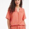 Blouse Bee Tides print: Jouw Perfecte Lente/Zomer Blouse Maak je klaar voor zonnige dagen met de Blouse Bee Tides print. Deze prachtige roze blouse is een must-have in je garderobe. Gemaakt van 100% hoogwaardige viscose, biedt deze blouse een heerlijke, luchtige drape die ideaal is voor de warmere maanden. Het rechte model, samen met de korte mouwen en V-hals, zorgt voor een stijlvolle en ontspannen uitstraling. Het elastiek in de zoom voegt net dat beetje extra comfort toe, waardoor de blouse mooi op zijn plek blijft zitten. Gemaakt van hoogwaardige stof Deze blouse is vervaardigd uit 100% viscose, een ademend en zacht materiaal dat perfect is voor de zomerse dagen. Viscose is bekend om zijn zijdezachte gevoel en uitstekende vochtabsorberende eigenschappen. Dit garandeert niet alleen comfort, maar ook een luxe uitstraling die elke outfit naar een hoger niveau tilt. Stijladvies Deze blouse leent zich perfect voor elke gelegenheid. Combineer de Blouse Bee Tides print met een elegante broek of je favoriete jeans voor een moeiteloze en chique look. Of je nu naar kantoor gaat of een dagje uit plant, deze blouse past overal bij. Wasvoorschrift Het wasvoorschrift: Om de kwaliteit van je blouse te behouden, was deze op 30 graden. Vermijd agressieve schoonmaakmiddelen en zorg ervoor dat je de blouse niet bleekt. Droogvoorschrift: Hang de blouse op om te drogen; vermijd het gebruik van een droogtrommel om krimpen te voorkomen. Strijkvoorschrift: Strijk op een lage temperatuur om het materiaal mooi en soepel te houden. Met de Blouse Bee Tides print voeg je een veelzijdig en elegant stuk toe aan je kledingcollectie, perfect voor elke zomerse gelegenheid.