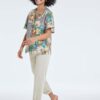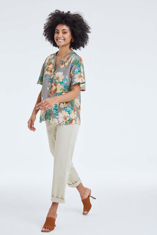 Blouse Manna Taupe Rising Sun Print: Tijdloze Elegantie Dompel je onder in de verfijnde uitstraling van de Blouse Manna Taupe Rising Sun Print. Deze prachtige blouse is uitgevoerd in zachte beige en bruine tinten en straalt een natuurlijke elegantie uit. Dankzij het luchtige design met korte mouwen en een rechte pasvorm, geniet je van ultiem comfort zonder in te boeten op stijl. De subtiele V-hals en knoopsluiting geven een verfijnde touch, perfect voor zonnige dagen vol energie en optimisme. Deze blouse maakt elke outfit sprankelend en fris. Gemaakt van hoogwaardige stof Gemaakt van 100% viscose, biedt de blouse een zachte, zijdeachtige aanraking die heerlijk aanvoelt op de huid. Viscose is bekend om zijn ademende en absorberende eigenschappen, ideaal voor warmere dagen. Deze stof houdt je koel en zorgt voor een comfortabele draagervaring. Bovendien heeft viscose een prachtige vloeiende val, waardoor de blouse moeiteloos elegantie uitstraalt. Stijladvies Combineer de Blouse Manna Taupe Rising Sun Print met een lekker zittende broek of je favoriete jeans voor een chique casual look. Door de veelzijdige kleuren en het speelse dessin, past deze blouse perfect bij zowel neutrale als opvallende accessoires. Of je nu een koffiedate hebt of naar kantoor gaat, je ziet er altijd stijlvol en zelfverzekerd uit. Wasvoorschrift Wasvoorschrift: Was de blouse met de hand of in de machine op een koud programma om de kwaliteit te behouden. Gebruik bij voorkeur een mild wasmiddel om de kleuren en de stof te beschermen. Droogvoorschrift: Hang de blouse op aan een kledinghanger om te drogen, vermijd direct zonlicht om verkleuring te voorkomen. Strijkvoorschrift: Strijk de blouse indien nodig op een lage temperatuur. Door de delicate aard van viscose, is het aan te raden om de stof lichtvochtig te strijken voor een optimaal resultaat. Geniet elke dag opnieuw van de verfijnde charme van de Blouse Manna Taupe Rising Sun Print en voeg een vleugje stijl toe aan je garderobe.