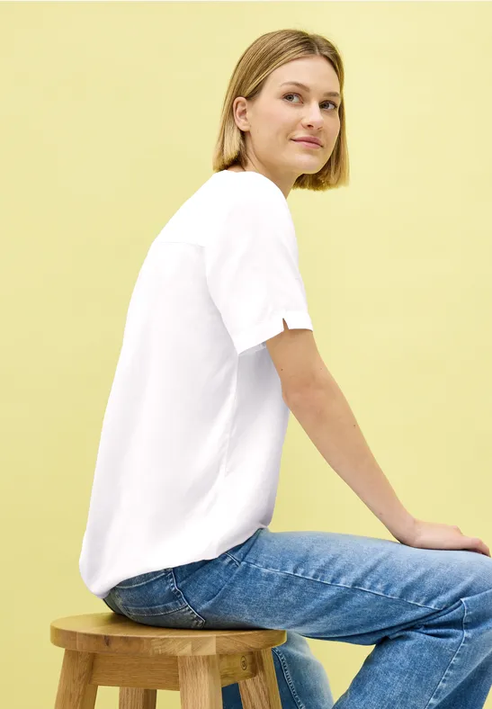 Deze blouse van CECIL voor dames is bijzonder charmant met zijn ronde V-hals en knoopdetail aan de zoom. Dankzij de zachte viscosestof is hij comfortabel om te dragen. Ideaal voor vrouwelijke alledaagse looks.