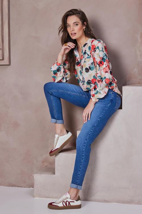 Blouse Tallis Escape print: Jouw Perfecte Voorjaarslook De Blouse Tallis Escape print is de frisse aanvulling op je garderobe die je zoekt. De blouse is uitgevoerd in een lichte witte kleur met een opvallende, vrolijke print die elke outfit opfleurt. Met lange mouwen en een comfortabele regular fit pasvorm biedt deze blouse zowel stijl als comfort. De knoopsluiting aan de voorkant en de ronde hals zorgen voor een eigentijdse uitstraling die je moeiteloos door de warme dagen begeleidt. Gemaakt van hoogwaardige stof Deze blouse is vervaardigd uit 85% viscose en 15% polyamide. De combinatie van deze materialen zorgt voor een soepel vallende stof die ademend is en prettig aanvoelt op de huid. Viscose biedt een zijdezachte touch en zorgt ervoor dat de blouse vloeiend om je lichaam valt. De toevoeging van polyamide geeft extra stevigheid en duurzaamheid, waardoor je nog langer plezier hebt van dit veelzijdige kledingstuk. Stijladvies Of je nu een dag op kantoor hebt of een ontspannen weekendje weg plant, de Blouse Tallis Escape print is eenvoudig te combineren en biedt volop stijlopties. Draag hem bijvoorbeeld met een mooie broek of combineer hem met een jeans voor een casual look. De opvallende print geeft een speelse twist aan je outfit, perfect voor de zonnige lentedagen. Wasvoorschrift Het wasvoorschrift: Machinewas op maximaal 30 graden om de kwaliteit van de stof te behouden. Droogvoorschrift: Liggend laten drogen om krimpen te voorkomen. Strijkvoorschrift: Strijken op lage temperatuur, bij voorkeur aan de binnenkant van de stof. Met de Blouse Tallis Escape print ben je altijd stijlvol voorbereid op iedere gelegenheid. Geniet van de lichte en luchtige pasvorm die moeiteloos past bij het seizoen en jouw unieke stijl.