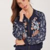 Bomber Fantasy Flower mix embro: Unieke Bloemenpracht De Bomber Fantasy Flower mix embro is een must-have voor jouw kledingkast. Deze prachtige jas is ontworpen met een oog voor detail. De lange mouwen en de regular fit zorgen voor een comfortabele draagervaring, terwijl de ritssluiting je een moeiteloze look biedt. De levendige blauwe kleur, gecombineerd met verfijnde bloemen borduursels, laat je stralen tijdens zonnige dagen. Met de geribde boorden en ronde halslijn straalt de jas elegantie uit. Gemaakt van hoogwaardige stof Deze jas is vervaardigd uit 100% viscose, wat bijdraagt aan een soepele en comfortabele pasvorm. Het materiaal valt prachtig en ademt goed, waardoor het ideaal is voor gebruik in warmer weer. Viscose is bekend om zijn luxe uitstraling en zachte gevoel, wat ervoor zorgt dat je er altijd verfijnd uitziet. Stijladvies Combineer de Bomber Fantasy Flower mix embro eenvoudig met een broek of een fijne jeans voor een casual, maar chique look. Het contrast van de bloemen tegen de blauwe achtergrond geeft je outfit een frisse en vrouwelijke touch. Perfect voor een dagje uit of een ontspannen avondwandeling. Wasvoorschrift Wasvoorschrift: Om de jas in topconditie te houden, was je deze op 30 graden. Dit helpt om de kleur en kwaliteit te behouden. Droogvoorschrift: Niet in de droger. Laat de jas liggend drogen om te voorkomen dat hij zijn vorm verliest. Strijkvoorschrift: Strijk indien nodig op een lage temperatuur om de stof mooi glad te houden zonder schade aan te brengen. Met de Bomber Fantasy Flower mix embro haal je een veelzijdige en elegante jas in huis die zich moeiteloos laat stylen voor verschillende gelegenheden. Deze jas is een perfecte aanvulling op je garderobe, waarbij comfort en stijl samengaan.