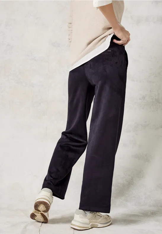 Deze velourslook broek van CECIL voor dames is een echte blikvanger. De broek in de stijl Neele wordt gekenmerkt door de hoge taille en wijde pijpen, die een stijlvol silhouet creëren, terwijl de elastische tailleband met trekkoord een comfortabele pasvorm biedt. De materiaalmix met stretch maakt deze broek bijzonder comfortabel om te dragen.
