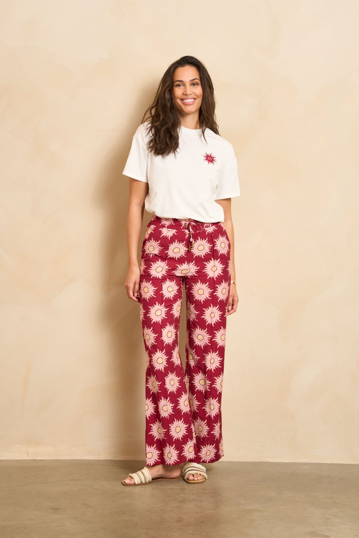 Broek Remi is een brique broek met print en straight leg. De elastieke tailleband en steekzakken voor zorgen voor comfort, terwijl de paspelzakken achter een nette touch geven. De zachte stof met viscose draagt prettig. Mooi voor werk of weekend. Materiaal: 85% viscose 15% nylon Model en fit: Het model is 1.74 m en draagt maat S. De maat valt straight. Lengte broek: 82 cm bij maat S