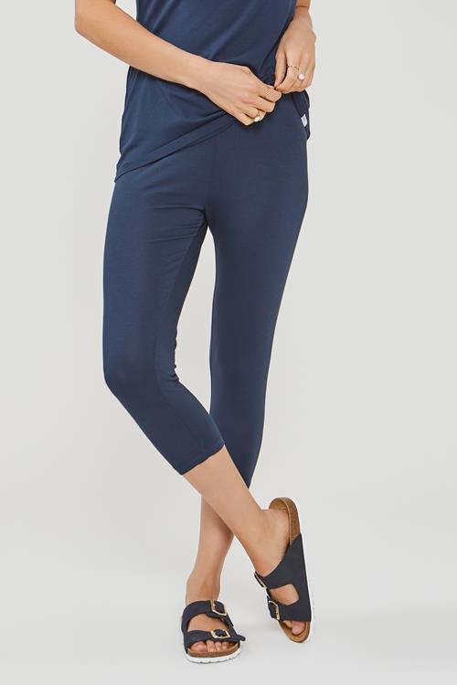 Stijlvolle Capri leggings donkerblauw Deze Capri leggings donkerblauw zijn het perfecte kledingstuk voor een look die zowel stijlvol als comfortabel is. Met een slank gesneden model dat je figuur complimenteert en de veelzijdigheid van de caprilengte, ben je altijd klaar om te gaan, of je nu naar het park gaat of thuis ontspant. De elastische tailleband zorgt voor draagcomfort en een pasvorm die altijd goed zit. Dankzij het tijdloze donkerblauw is dit een must-have voor ieder seizoen. Gemaakt van hoogwaardige stof Gemaakt van een heerlijke mix van 95% viscose en 5% elasthaan, bieden deze leggings een zachte en ademende ervaring. De natuurlijke flair van viscose geeft je de luxe van zijde-achtige zachtheid, terwijl het elasthaan juist zorgt voor de nodige stretch en souplesse. Hierdoor bewegen de leggings moeiteloos met je mee, zonder vorm te verliezen. Stijladvies Deze veelzijdige leggings zijn perfect te combineren met allerlei bovenstukken. Voor een casual maar toch verzorgde uitstraling, draag je ze samen met een leuke blouse. Een simpele top en een paar sandalen maken je outfit compleet voor een ontspannen dag. Wasvoorschrift Wasvoorschrift: Was deze leggings binnenstebuiten in een fijnwasprogramma op maximaal 30 graden om de kleur en vorm te behouden. Droogvoorschrift: Laat de leggings liggend drogen zodat ze hun vorm behouden en de stof mooi blijft. Strijkvoorschrift: Strijken kan op lage temperatuur als dat nodig is, maar vermijd direct contact met de stof om glansplekken te voorkomen. Met deze onderhoudstips blijven je capri leggings er als nieuw uitzien, wasbeurt na wasbeurt.
