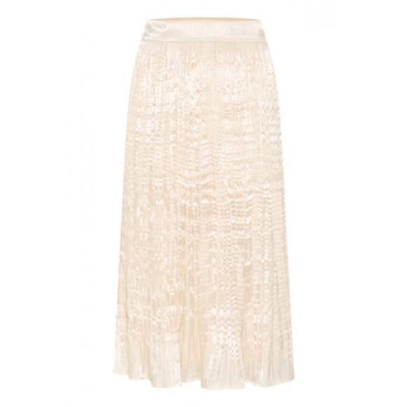 Effen glanzende plisse rok van het merk Culture. Deze rok heeft een midi lengte, elastische boord en loose fit.