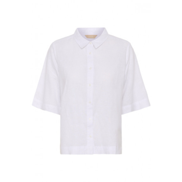 Luchtige blouse van het merk Culture met een frisse, zomerse uitstraling. Dit model is uitgevoerd in een lichtblauwe tint met fijne verticale strepen en wordt ook in een effen witte variant getoond – ideaal voor een veelzijdige garderobe. De blouse heeft een klassieke kraag en een knoopsluiting over de volledige lengte, wat zorgt voor een tijdloze en nette look. De korte, iets ruimvallende mouwen en de relaxte pasvorm geven het geheel een casual en comfortabele feel. De lichte stof maakt deze blouse perfect voor warmere dagen.