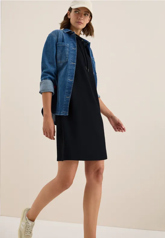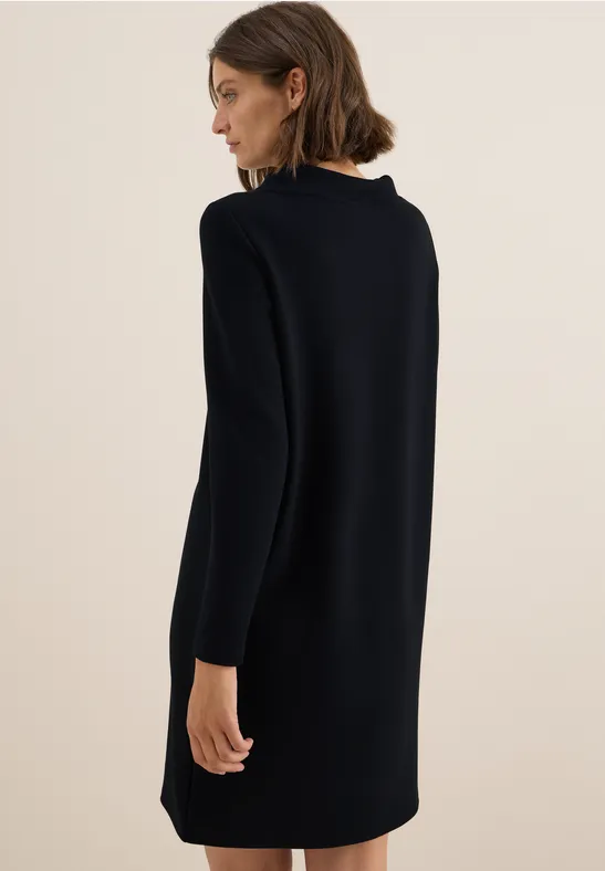 Deze knielange jurk van CECIL voor dames heeft een speciale cupro touch stof met stretch voor een zacht, soepel gevoel. De kraag met tunnelkoord en het silhouet met lange mouwen in een effen kleur zorgen voor een moderne, vrouwelijke look. Ideaal voor stijlvolle outfits met een hoge comfortfactor.