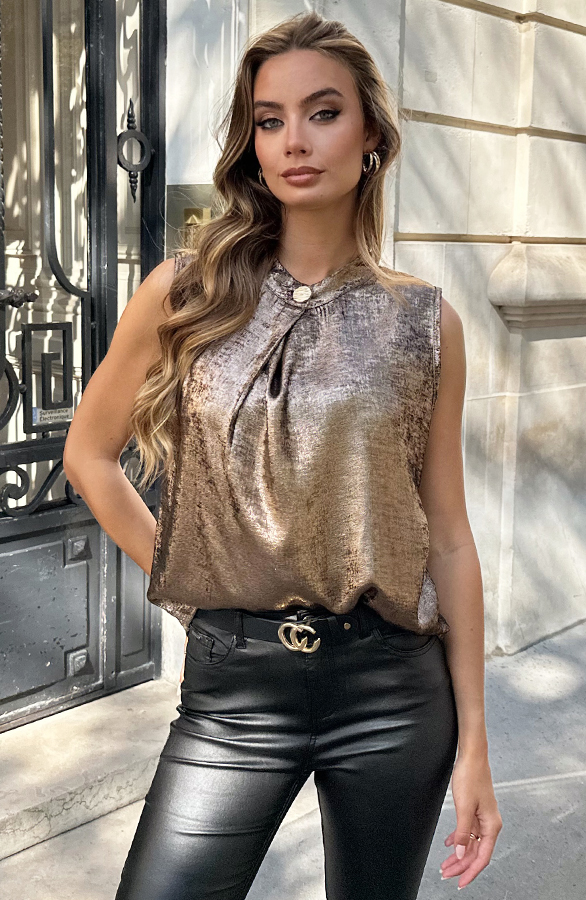 Detailed Button Top Metallic Brons
