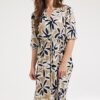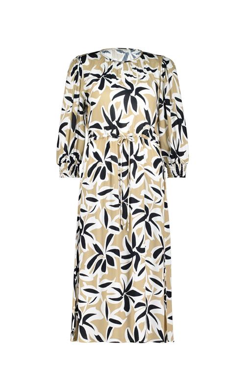 Verfrissende Elegantie met de Dress Jade Shade print Duik in de wereld van verfijnde stijl met de Dress Jade Shade print. Deze jurk straalt een moeiteloos elegante vibe uit die perfect past bij de warmte van het komende seizoen. De subtiele beige en bruine tinten combineren prachtig met het speelse patroon, waardoor je onweerstaanbaar opvalt. Met een rechte pasvorm en driekwart mouwen biedt deze jurk zowel comfort als moderniteit. De V-hals voegt een vleugje verfijning toe, ideaal voor zonnige dagen en frisse avonden. Gemaakt van hoogwaardige stof De Dress Jade Shade print is vervaardigd uit 100% viscose, een stof die uitblinkt in lichtheid en ademend vermogen. Deze hoogwaardige viscose voelt zijdezacht aan op je huid en valt mooi, waardoor je vrij kunt bewegen met een natuurlijk elegante uitstraling. De luchtige stof is ideaal om koel te blijven tijdens warme dagen, terwijl het toch een stijlvolle look behoudt. Stijladvies Deze jurk is veelzijdig genoeg voor verschillende gelegenheden. Combineer met elegante sandalen voor een ontspannen daglook of kies voor stijlvolle hakken en een clutch voor een avondje uit. Voeg een riem toe om je taille extra te accentueren of draag de jurk los voor een meer casual en vloeiende stijl. Deze jurk biedt eindeloze combinaties voor elke gelegenheid. Wasvoorschrift Wasvoorschrift: Om de kwaliteit van je Dress Jade Shade print te behouden, was je de jurk het beste met de hand op een lage temperatuur of kies voor een fijnwasprogramma. Droogvoorschrift: Raadpleeg de hangdroogmethode om de vorm en de stof van de jurk te beschermen. Vermijd direct zonlicht om verkleuring tegen te gaan. Strijkvoorschrift: Strijken kan indien nodig op een lage temperatuur. Voorzichtigheid is geboden om de print te behouden. De Dress Jade Shade print biedt alle ingrediënten voor een stijlvolle en comfortabele ervaring. Voeg deze must-have toe aan je garderobe en geniet van moeiteloze elegantie bij elke stap.