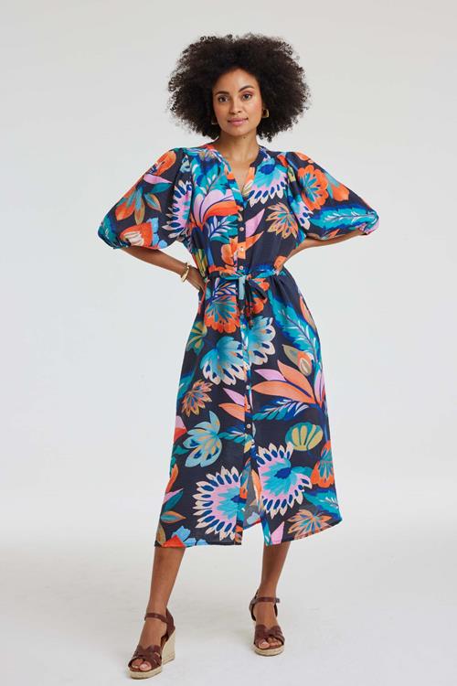 Dress Lina Blue Tropicalia print