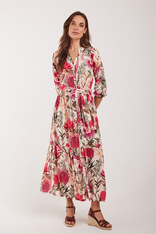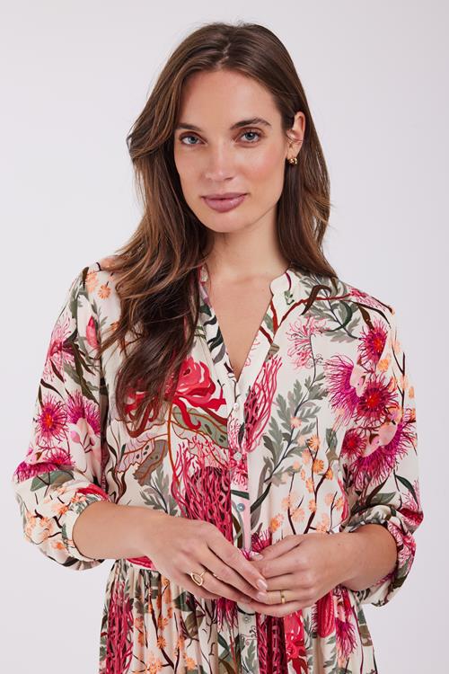 Dress Melody Salsa print: Een Vleugje Elegantie Ontdek de Dress Melody Salsa print, jouw nieuwe favoriet voor een luchtige en vrolijke stijl. Deze jurk belooft je een elegante verschijning met zijn witte kleur en verfijnde print. De driekwart mouwlengte en V-hals geven het een moderne uitstraling, terwijl de knoopsluiting en ceintuur met riemlussen zorgen voor een perfecte pasvorm. Met zijn regular fit en rechte pasvorm is deze jurk jouw ideale compagnon voor zonnige dagen. Gemaakt van hoogwaardige stof Gemaakt van 100% viscose, biedt deze dress zowel comfort als stijl. Viscose staat bekend om zijn lichte en ademende eigenschappen, waardoor het perfect is voor warme temperaturen. De stof voelt zacht aan op de huid en beweegt soepel met je mee, wat zorgt voor ultiem draagcomfort tijdens elke gelegenheid. Stijladvies Combineer de Dress Melody Salsa print met een paar elegante sandalen voor een casual look, of kies voor nette pumps voor een wat formelere uitstraling. Voeg eventueel subtiele accessoires toe zoals een delicate ketting of een klassieke armband om je outfit compleet te maken. Deze jurk is veelzijdig genoeg om zowel overdag als ’s avonds te dragen, of het nu voor een lunchafspraak is of een zomers feestje. Wasvoorschrift Wasinstructie: Was de jurk op 30 graden om de kwaliteit van de viscose te behouden. Gebruik een mild wasmiddel en schakel de centrifugeerfunctie uit voor de beste resultaten. Droogvoorschrift: Laat de jurk plat liggend drogen. Vermijd het gebruik van een droger om krimpen of beschadiging te voorkomen. Strijkvoorschrift: Strijk op lage temperatuur om de stof er vlekkeloos uit te laten zien. Vermijd direct contact met de print om ervoor te zorgen dat de kleuren helder blijven. Met de Dress Melody Salsa print ben je klaargestoomd voor elke gelegenheid, terwijl je geniet van comfort en stijl. Voeg deze must-have toe aan je garderobe en ervaar de veelzijdigheid en elegantie die het biedt.