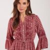 Met de Dress Swing Dark Red Sunny Print straal je zelfverzekerdheid uit Ervaar de perfecte combinatie van stijl en comfort met de Dress Swing Dark Red Sunny Print. Deze jurk in een warme rode tint met vrolijk zonnig dessin is ideaal voor een luchtige uitstraling. De driekwartsmouwen en de V-hals met knoopsluiting voegen een elegante touch toe aan je outfit. Met een recht regular fit model en een subtiel taillekoordje, biedt deze jurk je een klassieke en flatterende pasvorm. Gemaakt van hoogwaardige stof De Dress Swing Dark Red Sunny Print is gemaakt van 100% rayon, een zachte en ademende stof die je een comfortabel gevoel geeft, zelfs tijdens de warmere dagen. Rayon staat bekend om zijn zijdeachtige textuur en zijn vermogen om vocht op te nemen, waardoor je de hele dag fris blijft. Stijladvies Combineer deze jurk met een paar stijlvolle sandalen voor een casual look of kies voor hakken om het geheel iets chiquer te maken. Voeg enkele delicate accessoires toe voor een verfijnde finishing touch. Perfect voor zowel een ontspannen dagje uit als een gezellige avond. Wasvoorschrift Wasvoorschrift: Was de jurk op maximaal 30 graden om de kwaliteit van de stof te behouden. Droogvoorschrift: Vermijd het gebruik van een droger; laat je jurk aan de lijn drogen voor het beste resultaat. Strijkvoorschrift: Strijk deze jurk op een lage temperatuur om kreukels te verwijderen zonder de stof te beschadigen. Met de Dress Swing Dark Red Sunny Print voeg je moeiteloos een elegante en veelzijdige touch toe aan je collectie aanbiedingen voor dames rokken en dames jurken.