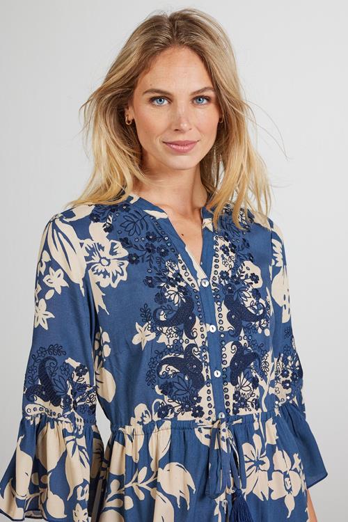Dress Swing Darkblue Florique print – Elegantie voor elke gelegenheid Met de Dress Swing Darkblue Florique print voeg je een vleugje verfijning en stijl toe aan je garderobe. Deze jurk is uitgevoerd in een prachtige donkerblauwe tint met een Florique print die de aandacht trekt. Dankzij de driekwart mouwen en de rechte pasvorm biedt deze jurk comfort en elegantie in één. De V-hals en de knoopsluiting geven het ontwerp een extra stijlvolle touch, terwijl het taillekoordje ervoor zorgt dat je de jurk perfect kunt aanpassen aan je figuur. Gemaakt van hoogwaardige stof Deze jurk is vervaardigd van 100% rayon, een materiaal dat bekend staat om zijn lichte en ademende eigenschappen. Dankzij de luchtige structuur is deze jurk uitermate geschikt voor de warmere dagen, terwijl je er altijd verzekerd van bent dat je comfortabel en stijlvol voor de dag komt. Rayon zorgt eveneens voor een zachte en luxe uitstraling, waardoor je altijd en overal straalt. Stijladvies Combineer de Dress Swing Darkblue Florique print met mooie sandalen of hakken voor een elegante daglook. Voeg een paar subtiele sieraden toe om de Florique print nog meer te laten spreken. Of kies voor stijlvolle sneakers en een denim jasje voor een meer casual uitstraling. Welke stijl je ook kiest, met deze jurk ben je altijd in voor een stijlvolle verschijning. Wasvoorschrift Wasinstructie: Was de jurk op maximaal 30 graden om de stof en print mooi te houden. Droogvoorschrift: Niet in de droger. Laat de jurk liggend drogen om krimpen te voorkomen. Strijkvoorschrift: Strijk op lage temperatuur om de kwaliteit van het rayon te behouden en de Florique print te beschermen. Met de Dress Swing Darkblue Florique print ben je klaar voor elke gelegenheid in stijl en comfort. Voeg deze veelzijdige en elegante jurk toe aan je collectie en voel je op je best.