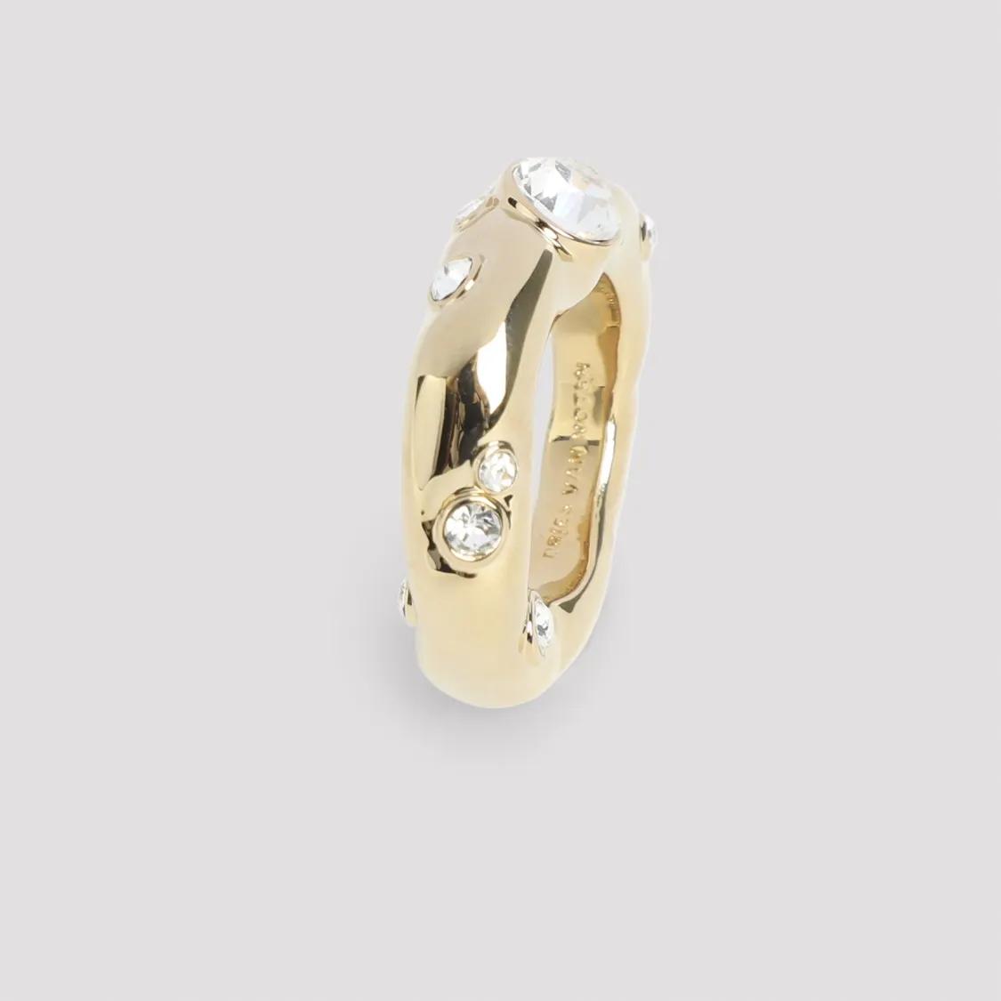 Dries Van Noten Ringen – Polished Brass Ring With Clear Glass Embedding in multi