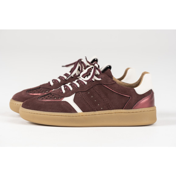 Sneaker van het merk DWRS. Deze bordeauxrode sneakers zijn uitgevoerd in suède en hebben witte en metallic roze details voor een speels contrast. De beige rubberen zool zorgt voor een sportieve en comfortabele look. Dankzij de vetersluiting kun je ze perfect afstellen op jouw voet.