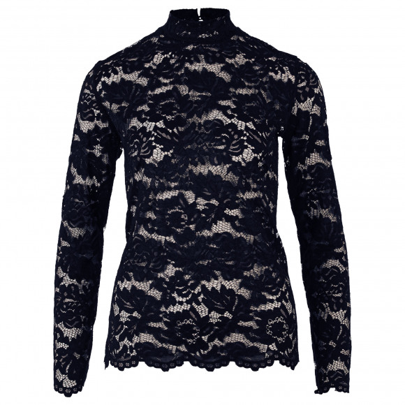 Top van Enjoy. Deze kanten top is een echte blikvanger met zijn elegante, transparante bloemenkant en opstaande kraag. De subtiel aansluitende pasvorm zorgt voor een vrouwelijke uitstraling, terwijl de elastische kant comfortabel meebeweegt. Perfect voor zowel feestelijke gelegenheden als om een casual outfit een chique touch te geven.