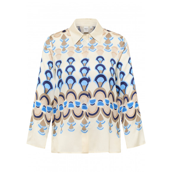 Blouse van het merk Eterna. Deze blouse heeft een rustige allover retro print, lange mouwen een kraagje en verborgen knoopsluiting.