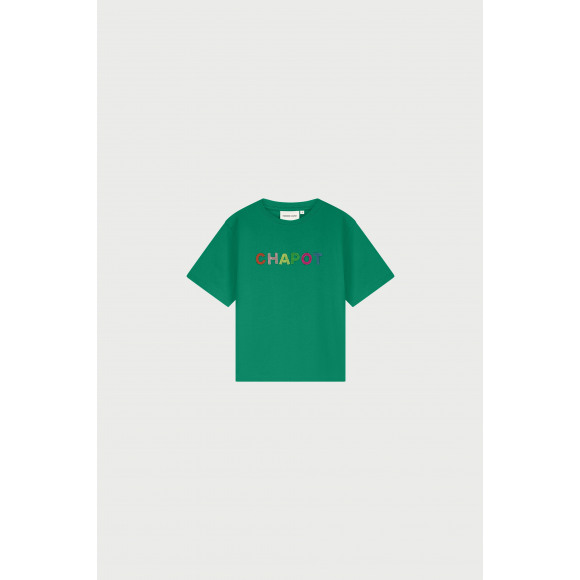 * Details: groen shirt, CHAPOT-logo op de borst met kleurrijke kraaltjes, zachte jerseykwaliteit