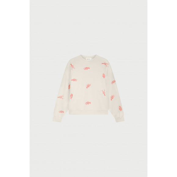 Sweater van Fabienne Chapot. Deze zachte sweater in een lichte ecru tint is een echte eyecatcher door de speelse kreeftjesprint in rood- en rozetinten. De relaxed fit en comfy sweatkwaliteit maken ‘m perfect voor elke dag, terwijl de print zorgt voor die typische Fabienne flair. Een fijne mix van casual en fun, precies zoals je ‘m wil.