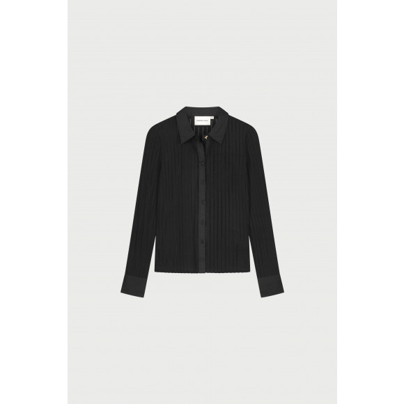 Blouse van Fabienne Chapot. Deze zwarte blouse straalt klasse en verfijning uit dankzij de rijke structuurstof met een subtiele plooitextuur. De klassieke kraag en knoopsluiting geven het item een tijdloze touch, terwijl de manchetten zorgen voor een elegante finish. Gemaakt van een zachte, soepele stof die heerlijk draagt, stijlvol én comfortabel in één.