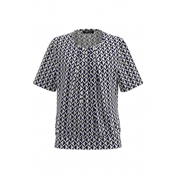 Top van het merk Frank Walder. Deze elegante top heeft een vrouwelijke uitstraling dankzij de ronde hals met subtiele plooival aan de voorkant. De soepelvallende stof zorgt voor een comfortabele pasvorm en een mooie beweging. De opvallende all-over print geeft het item een moderne en stijlvolle look, waardoor het eenvoudig te combineren is voor zowel een casual als een geklede outfit.