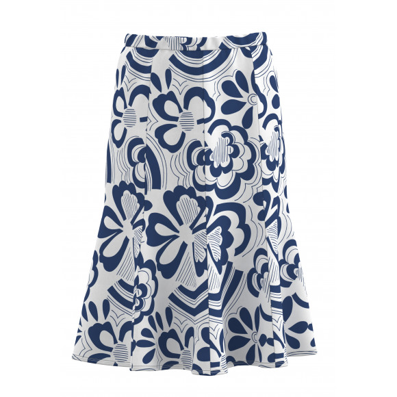 Rok van het merk Frank Walder. Deze dames rok heeft een speelse en vrouwelijke uitstraling dankzij de grafische bloemenprint in blauw en wit. De soepel vallende stof en licht uitlopende snit zorgen voor een elegante beweging bij elke stap. De rok is uitgevoerd met een comfortabele tailleband en heeft een flatterende pasvorm die mooi om het lichaam valt. Perfect voor zowel casual als meer geklede momenten.