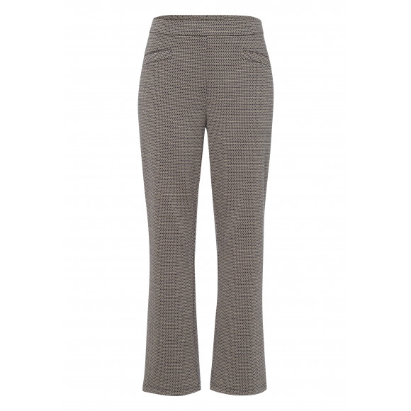 Pantalon van het merk Frank Walder. Deze comfortabele broek is uitgevoerd in een subtiel grafisch dessin in neutrale tinten, waardoor hij makkelijk te combineren is. De rechte pijpen en de soepele stof zorgen voor een elegante uitstraling en een fijne pasvorm. De broek heeft decoratieve zakjes aan de achterkant voor een verfijnd detail.