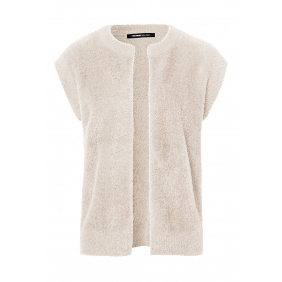Vest van Frank Walder. Dit mouwloze vest is een veelzijdig laagje dat warmte en stijl combineert. Uitgevoerd in een heerlijk zachte, fluffy stof voelt het vest comfortabel aan en geeft het elke outfit een cozy uitstraling. Het openvallende model maakt hem makkelijk te combineren, van casual tot chic. Verkrijgbaar in meerdere kleuren, zodat je jouw look steeds opnieuw kunt afstemmen.