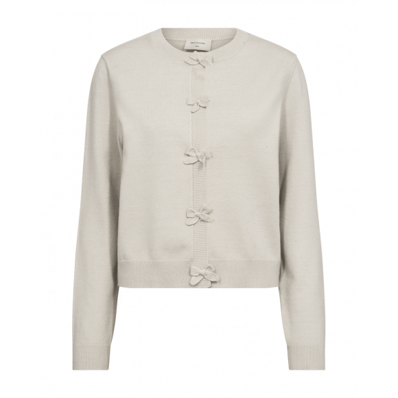 Vest van Freequent met een verfijnde en vrouwelijke uitstraling. Dit fijngebreide vest is uitgevoerd in een zachte, lichte kleur en afgewerkt met sierlijke striksluitingen aan de voorzijde. De subtiele details geven het vest een elegante twist, terwijl de comfortabele knit zorgt voor een prettige fit – ideaal voor frisse zomerdagen of avonden in zomercollectie 26.