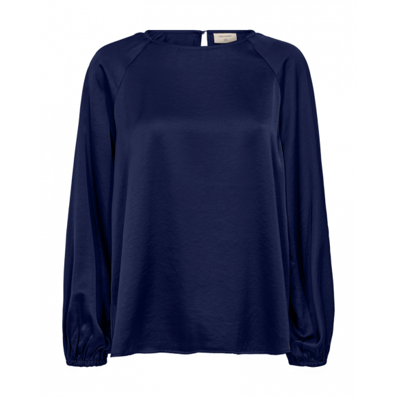 Blouse van Freequent. Deze donkerblauwe satijnlook blouse is een elegante en veelzijdige toevoeging aan je garderobe. Het glanzende materiaal geeft een luxe uitstraling, terwijl de losse pasvorm zorgt voor optimaal draagcomfort.