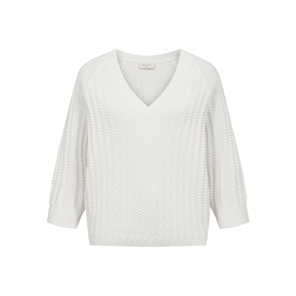 Trui van Freequent. Deze fijne knit is een echte allrounder die je moeiteloos het hele seizoen door draagt. De trui heeft een mooie V-hals en een comfortabele, iets losvallende pasvorm. De subtiele structuur in de stof geeft ‘m nét dat beetje extra, terwijl de brede boorden aan de mouwen en zoom zorgen voor een mooie, verzorgde afwerking. Perfect voor zowel casual als een meer geklede look.