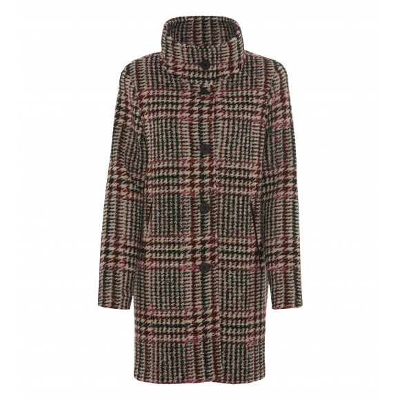 Jas van Fuchs Schmitt. Deze geruite jas in warme tinten rood, zwart en beige geeft elke outfit een stijlvolle en tijdloze uitstraling. De hoge kraag biedt extra warmte en bescherming, terwijl de grote knopen zorgen voor een klassieke look. De rechte pasvorm maakt de jas comfortabel en elegant tegelijk.
