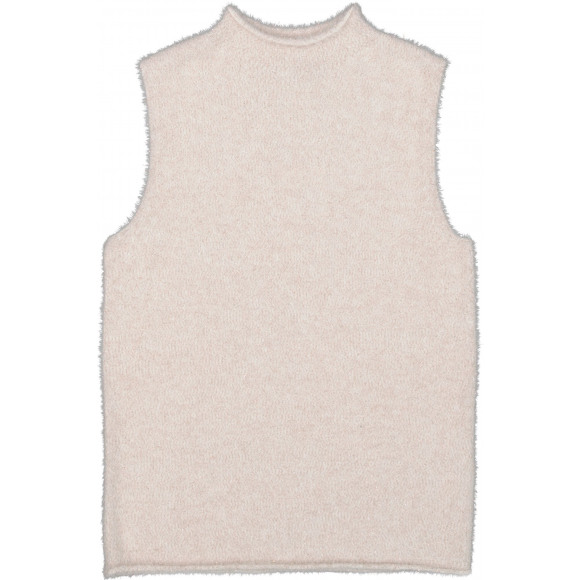 Mouwloze top van Garcia. Deze zachte gebreide top in een lichte ecru tint is perfect voor gelaagde looks. De fluffy structuur geeft een cosy uitstraling, terwijl de hoge ronde hals zorgt voor een moderne, elegante touch. Ideaal om te combineren met een blouse of lange mouwen top eronder, maar ook stijlvol om los te dragen.