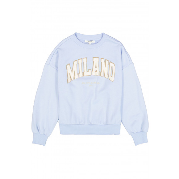 Sweater van Garcia. Deze comfy sweater in een frisse lichtblauwe kleur is een echte musthave voor je casual garderobe. De grote “MILANO” print op de borst geeft een sportieve, trendy uitstraling en maakt het item lekker opvallend. Het model heeft een relaxed fit met verlaagde schoudernaden en ribboorden aan de hals, mouwen en onderkant. Perfect voor een nonchalante look met een fashionable twist.