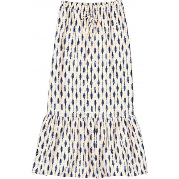 Lange strokenrok van het merk Garcia. Deze rok heeft een elastisch boord met koordje en een allover print.