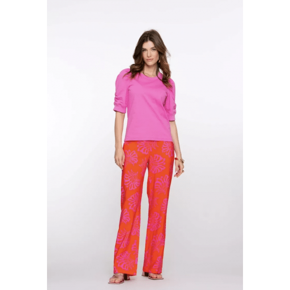 Wide leg fleurige broek met allover print van het merk Geisha. Deze broek heeft een elastische boord en valt mooi soepel om het been.