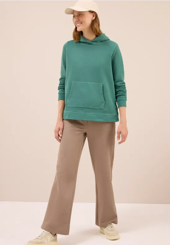 Deze damestrui met capuchon van CECIL heeft een casual garment dye-look. Puur katoen zorgt voor een natuurlijk draagcomfort. De kangoeroezak en manchetten maken hem de ideale metgezel voor ontspannen vrijetijdsoutfits.