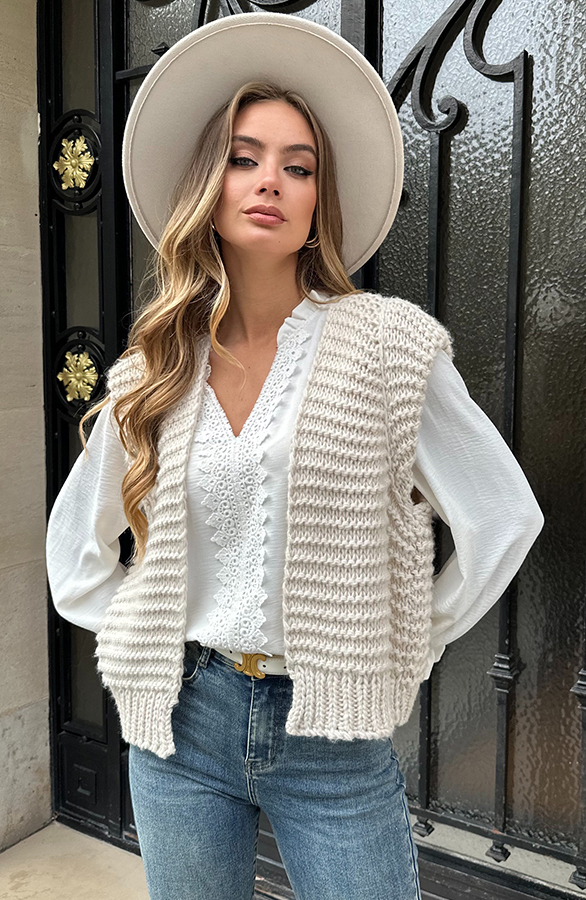 Grof Gebreid Gilet Kiek Beige