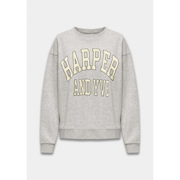 Sweater van Harper & Yve. Deze grijze sweater heeft een sportieve uitstraling dankzij de grote HARPER AND YVE logo print op de voorkant. Het model is uitgevoerd in een comfortabele, zachte sweatkwaliteit en heeft een relaxte pasvorm. De ronde hals en geribde boorden zorgen voor een klassieke, casual look.