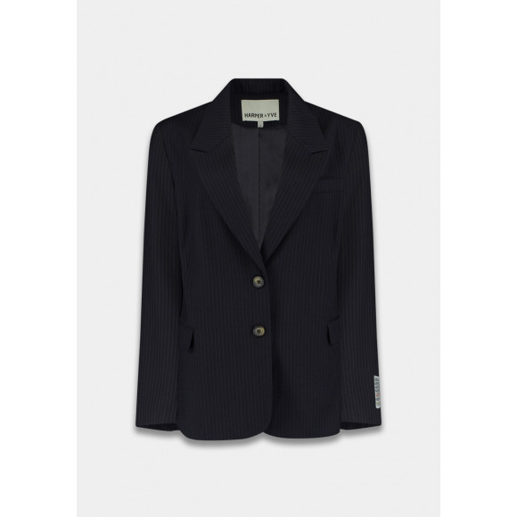 Blazer van Harper & Yve. Deze zwarte blazer met fijne krijtstreep is een tijdloos item met een moderne twist. Het model heeft een oversized fit en een klassieke reverskraag. De blazer sluit met twee knopen en is voorzien van klepzakken voor een stijlvol detail. Op de mouw prijkt een opvallend labeldetail dat zorgt voor de kenmerkende Harper & Yve-signatuur.