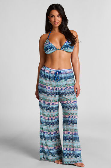 Omarm een moeiteloze stijl met deze broek. Gemaakt van lichtgewicht stof. Het wijdvallende ontwerp biedt comfort en bewegingsvrijheid, perfect om in te loungen of op ontdekkingstocht te gaan. Een elastische tailleband zorgt voor een ontspannen pasvorm die je natuurlijke vorm flatteert. Strandkleding